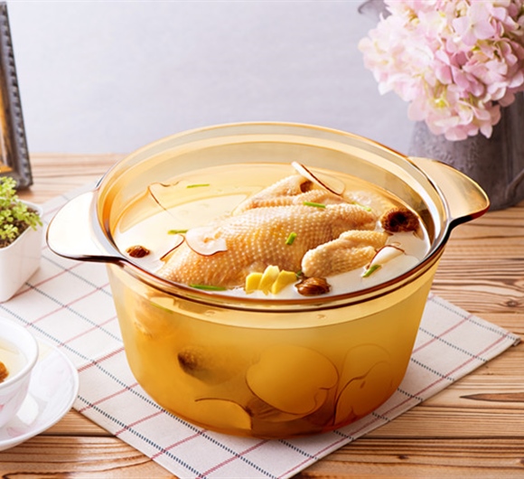 3.Visions晶彩养生锅加深锅体,可放入更多食材:把处理好的整鸡、蜜枣、海底椰、姜片、枸杞放入5.5L深锅中,加入清水,水位不超过锅体的2/3,盖上盖子,大火烧开后撇去浮沫转小火炖2-3个小时,加入盐调味即可。