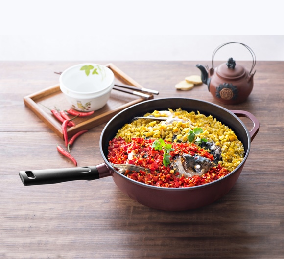 4.另取一锅,倒入适量茶油烧热,再将其淋入烧好的花鲢鱼头中便可。