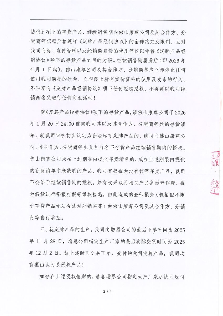 我司与佛山康尊公司及其相关方合作终止的声明函